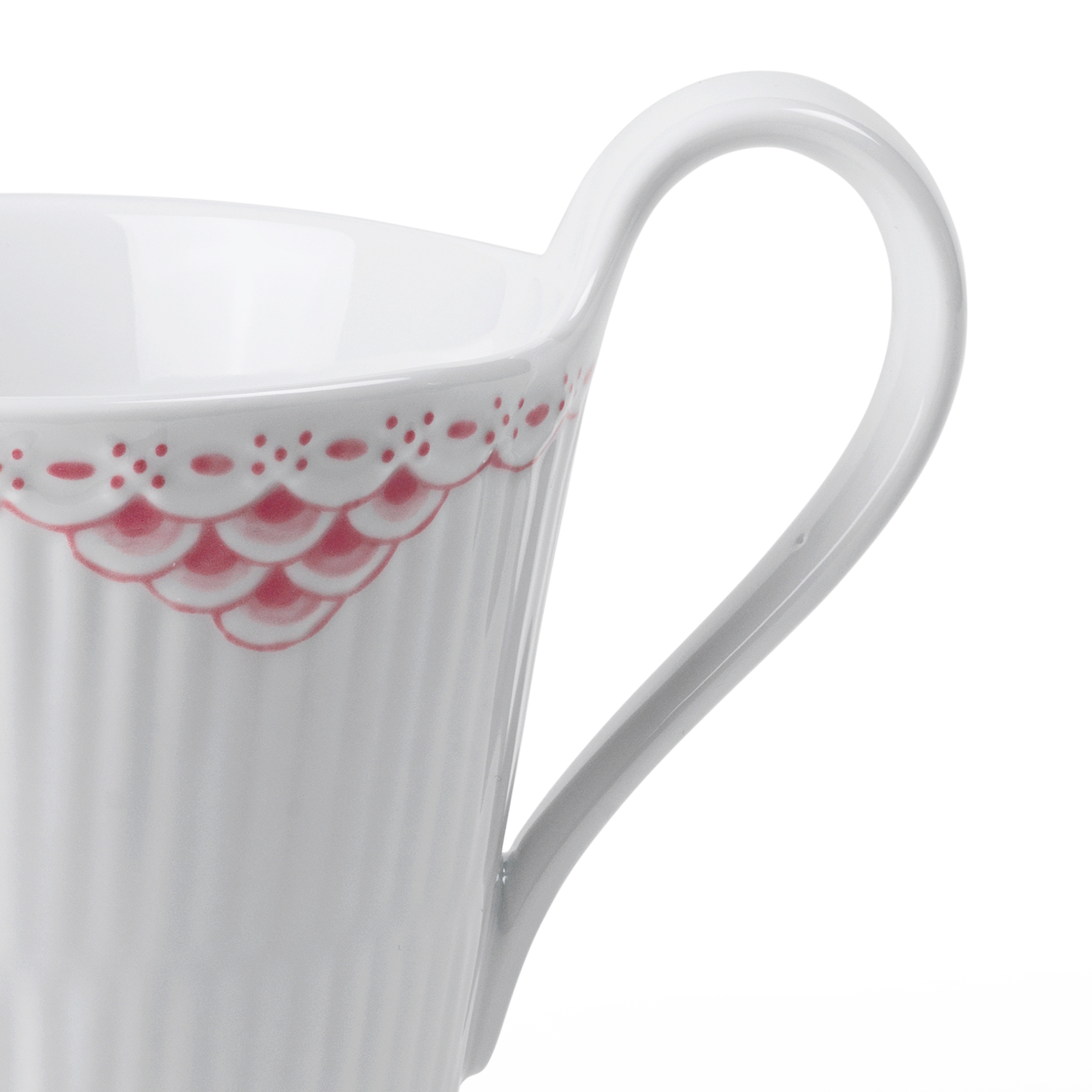 The High Handle Cup is a Royal Copenhagen classic. This Coral Lace version adds a touch of elegant minimalism to the organic shape of the cup. The half lace border is hand painted in the soft coral hue, while the rest of the porcelain's fluted surface remains white. A contemporary classic, designed to stand the test of time.