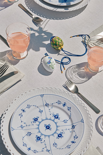 Porcelæn fra stel som Musselmalet Halvblonde og Musselmalet Helblonde passer til de store stunder i livet og tilbagevendede anledninger såsom forårets tilbagevenden og påskefrokoster med smukt dækkede borde. Porcelæn fra Ikoniske Mønstre løfter nutidens begivenheder, mens det også afspejler de minder, der er uløseligt forbundet med porcelænet.