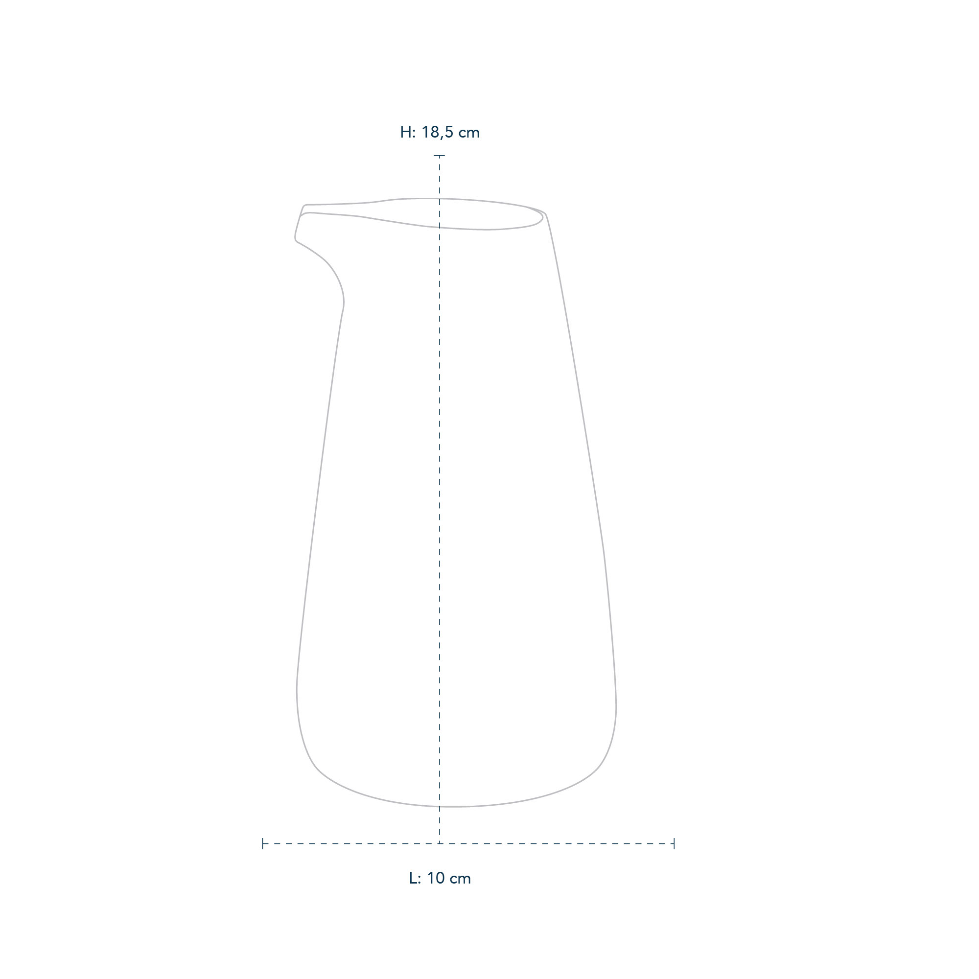 Den enkle form på denne Blå Elements Kande prydes af et uhøjtideligt, håndmalet mønster af blomstrende elementer, der snor sig langs et geometrisk felt af rifler og fiskeskælsdekorationer. Kandens kontemporære udtryk udstråler samtidig en klassik elegance, der passer ind i enhver borddæking og i enhver samling af Royal Copenhagen. Kanden rummer 70 cl og kan bruges til læskende drikke eller som mælkekande. Blå Elements blomstrer i glædefyldt elegance med en inspirerende sammensætning af klassiske Royal Copenhagen designelementer og håndmalede dekorationer, der får lov at vokse frit på porcelænets overflader. Ligesom Hvid Elements og Multifarvet Elements er Blå Elements smuk i sig selv eller i kombination med andre stel fra Royal Copenhagen for et udtryk af legende, nutidig skønhed.
