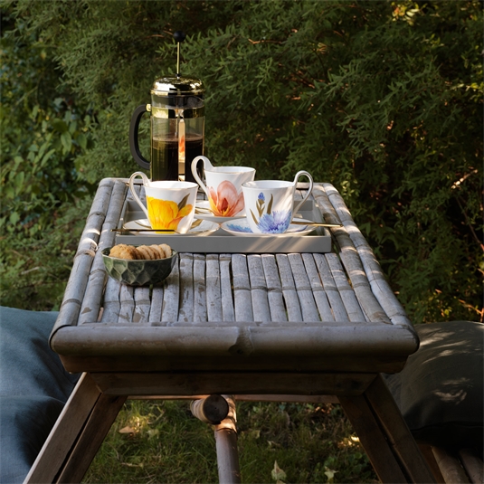 Flora er dekoreret med romantiske blomster så livagtige, at de selv i vintermørket kan frembringe forårets og sommerens glæder. Hver blomst er afbildet i forskellige udtryk på de mange funktionelle steldele, som er smukke hver for sig eller i et skønt blomsterflor. Find din yndlingsblomst og bring naturens blomstrende juveler indenfor.