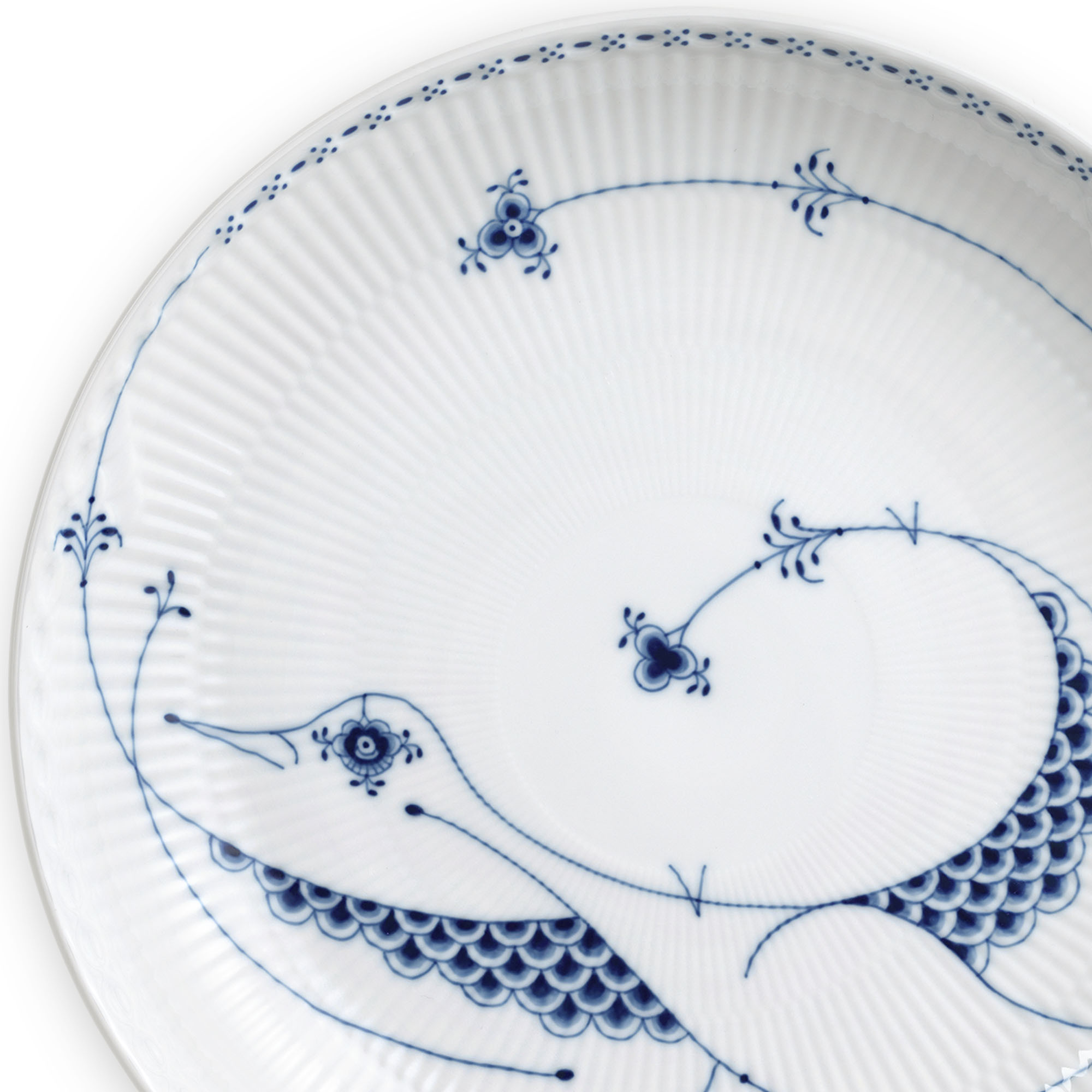 Denne tallerken er håndmalet med en svane. Med sin let dybe form kan denne smukke Royal Creatures tallerken både bruges til at servere i og spise af, og den findes med tre forskellige, håndmalede dekorationer: svanen, græshoppen og kuglefisken. De står smukt sammen og de charmerende skabninger får liv med hver bid, der tages. Man kan kombinere tallerkenerne med dele fra andre Royal Copenhagen stel for et personligt udtryk.