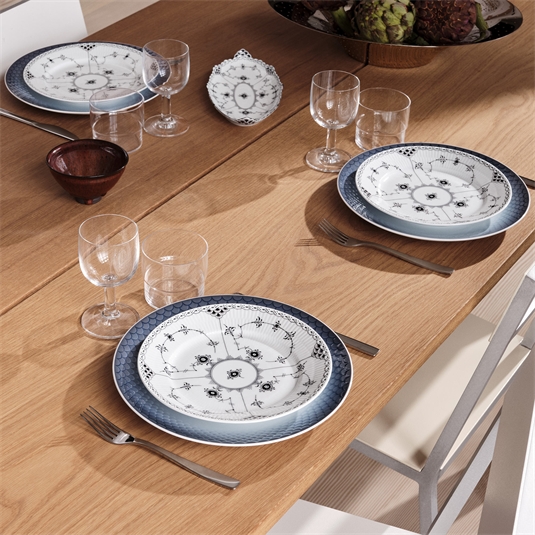 Historien bag Sort Musselmalet Halvblonde strækker sig helt tilbage til 1888, da det blåmalede Musselmalet Halvblonde blev skabt. 135 år senere bringer denne nyfortolkning af den tidløse klassiker en sofistikeret elegance med til bords med sine modige sorte penselstrøg. Sort Musselmalet Halvblonde er en unik tilføjelse til ethvert hjem – alene eller i kombination med Musselmalet Halvblonde for at skabe en ekstra mindeværdig middagsoplevelse, som forener det oprindelige med det nye.