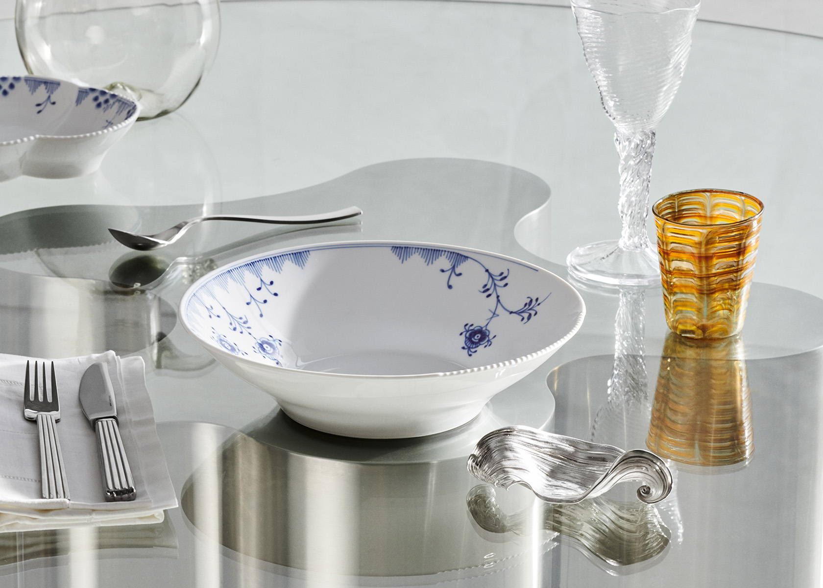 While HAV and Royal Creatures depict the ocean surrounding Denmark, the Blue Fluted Mega collection is a modern reinterpretation of our classic Blue Fluted Plain pattern. The Blue Fluted Mega pattern has become a modern design classic for the table.