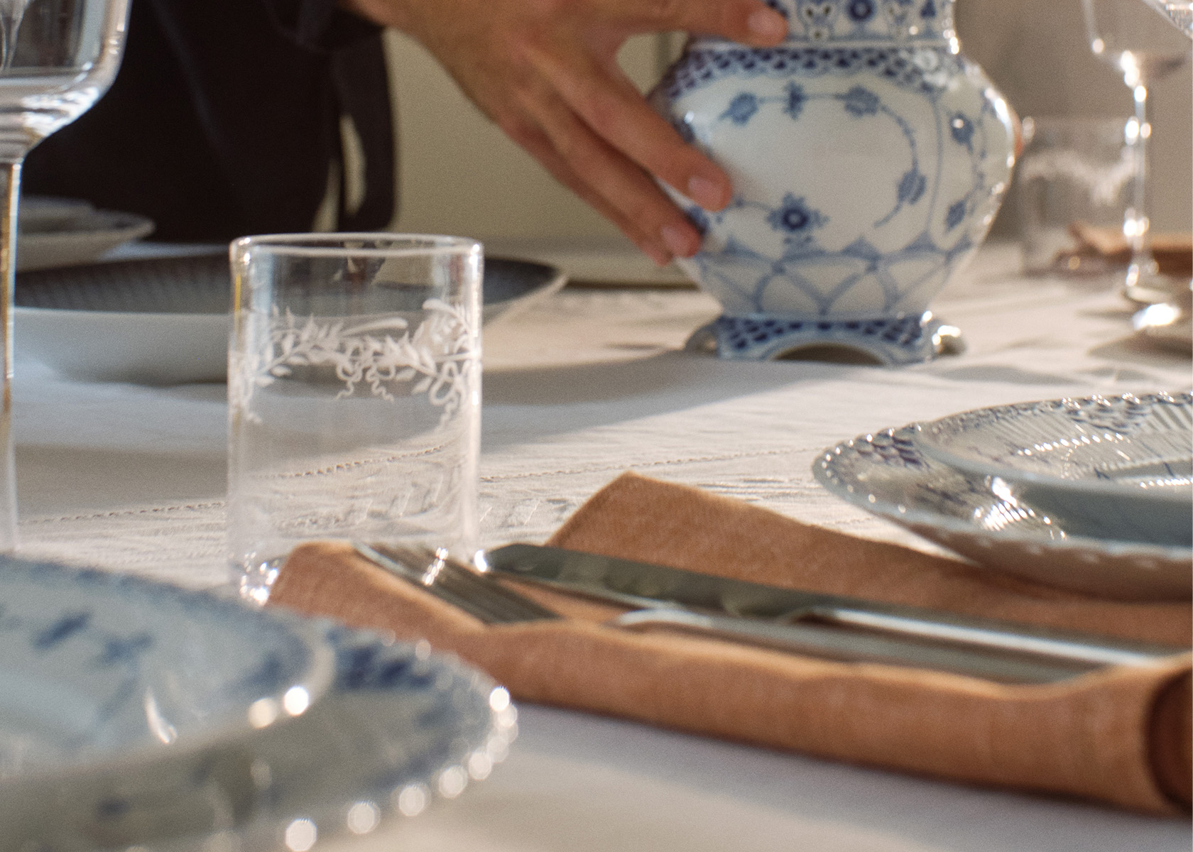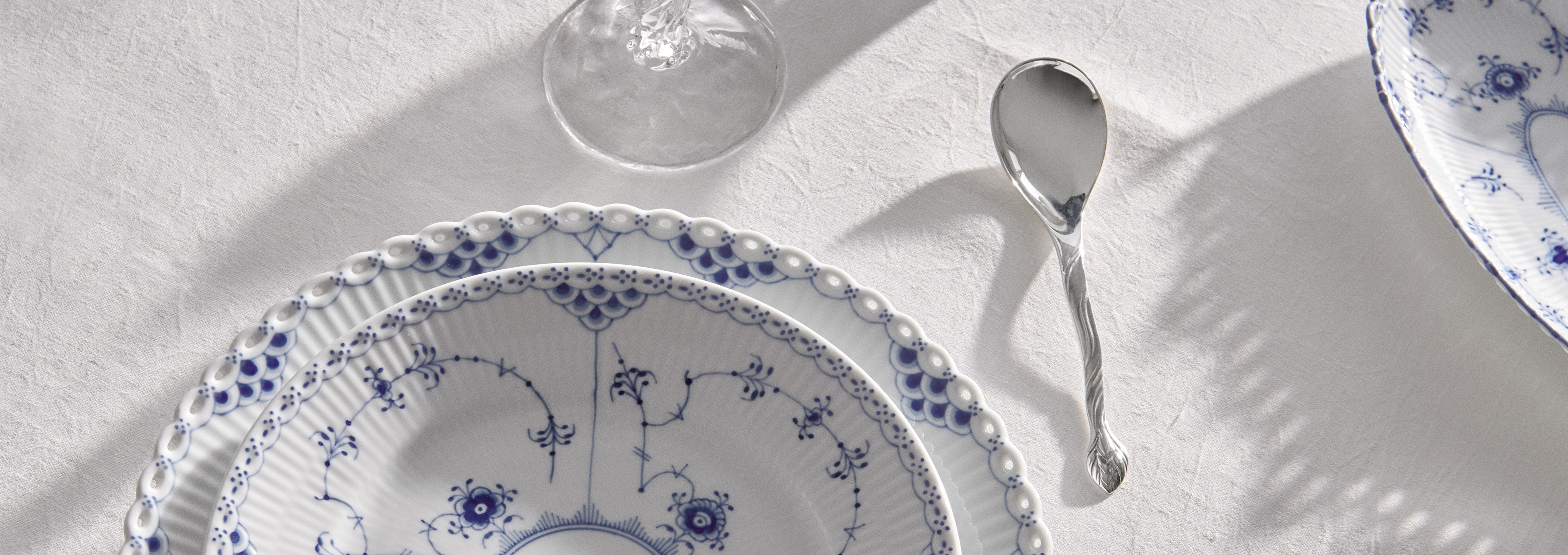 In 1888 the Blue Fluted Half Lace collection was born as a softer alternative to the intricate Full Lace collection. The Half Lace collection has the same richness as Blue Fluted Full Lace, but the captivating laced edge is not perforated and thereby the collection has a softer expression.