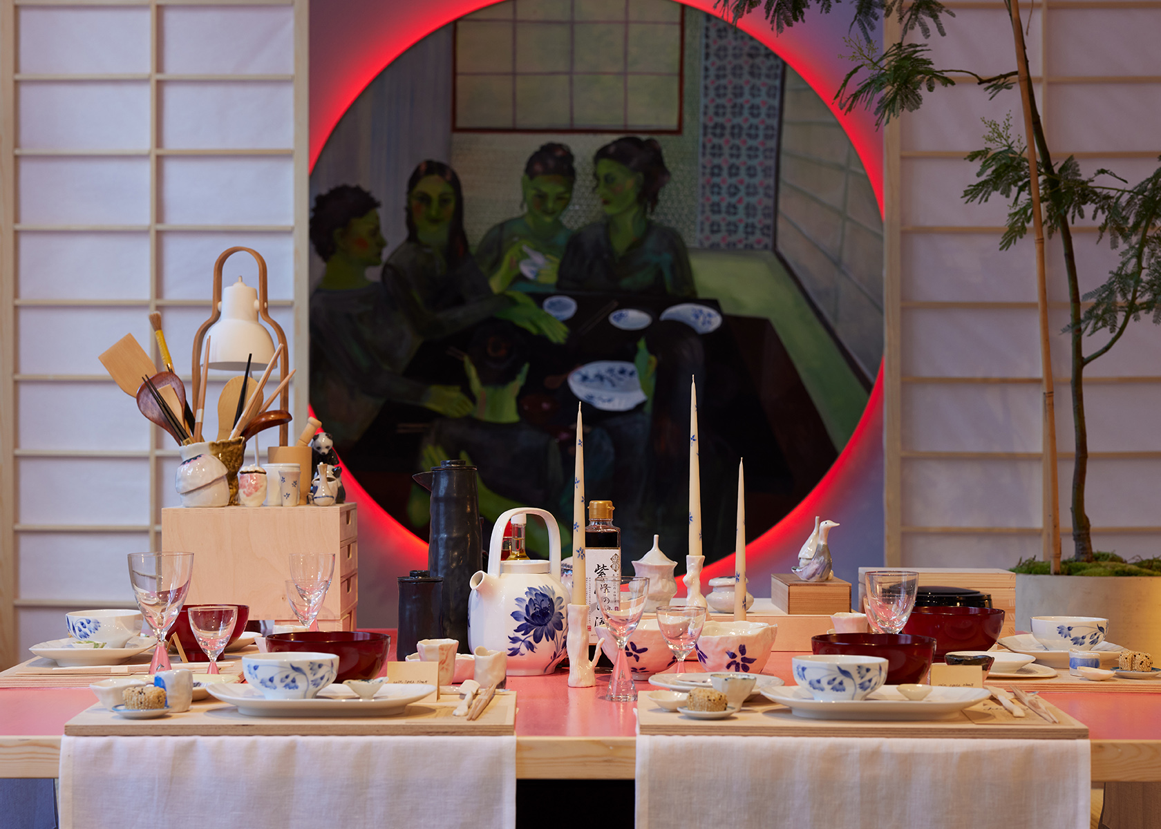 The table gets its eclectic expression from the graphical collection blomst, which is combined with White Fluted Full Lace, White Facet and UNIKA, all from Royal Copenhagen. As a counterpart to the angular pieces, Frederikke has created her own porcelain in soft and organic shapes. She has burnt and glazed the pieces in the workshop of renowned ceramicist Snorre Læssøe Stephensen (professor at the Danish Academy for Arts), who shares Frederikke’s passion for Japanese porcelain and ceramics.