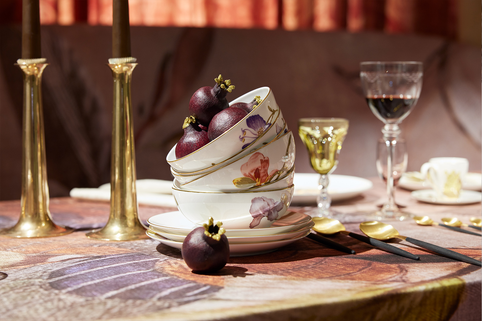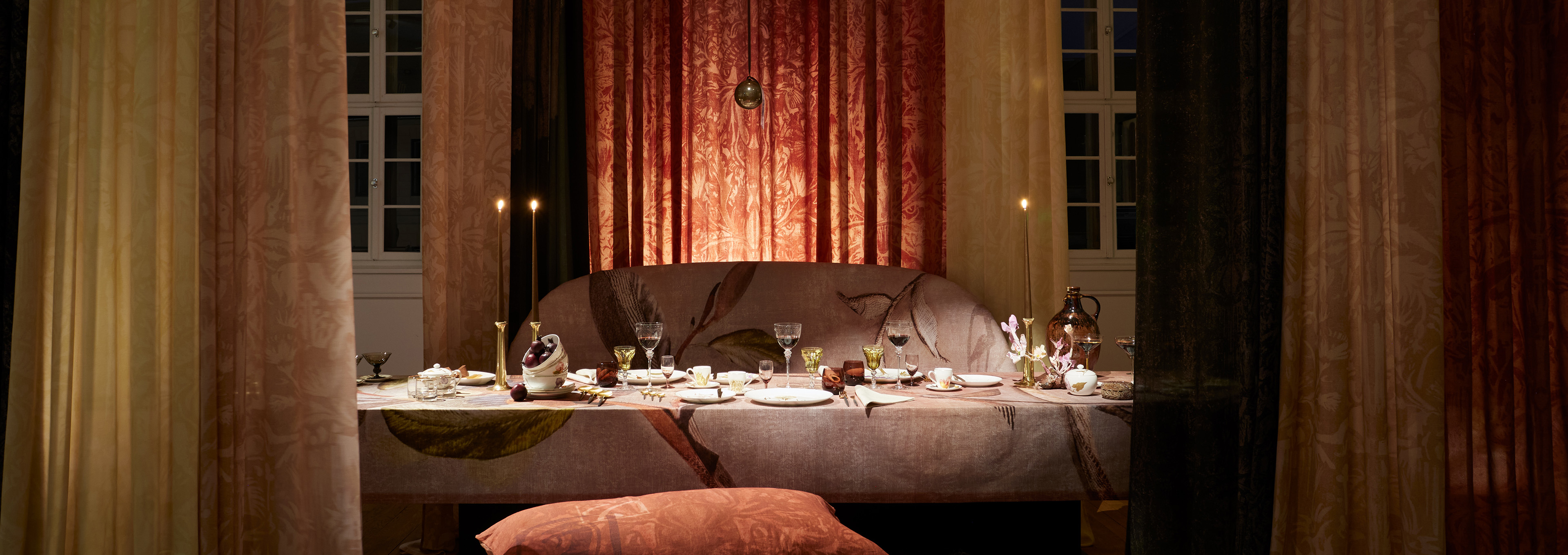 A HEDONISTIC CHRISTMAS CABINChristmas is an enchanting time. In the middle of a dark December we gather with loved ones and find comfort in traditions. But while you sit in the cosy glow of candle lights and warm yourself with a hot drink, why not allow yourself to dream? What if Christmas was a chance to do something new, grab those closest to you and disappear into a new Christmas universe where dreams and reality come together in the most enchanting of settings? This is the foundation for Royal Copenhagen’s Christmas Table Exhibition 2022.