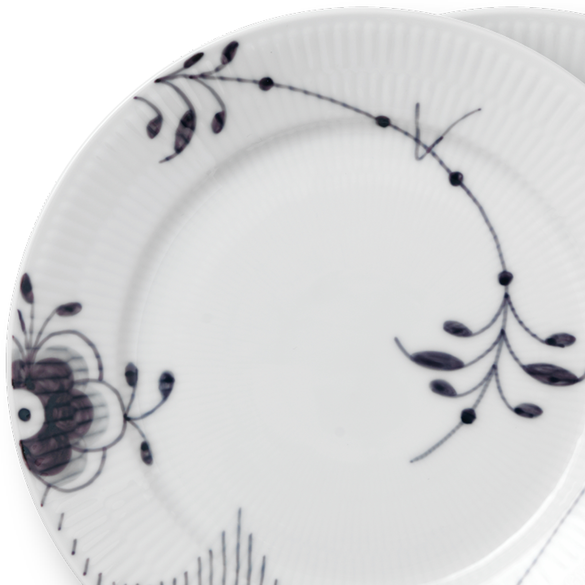 This 22 cm Black Fluted Mega Plate is hand painted in the eye catching Black Fluted Mega Decoration No. 2, where a stylized palmetto grows from the rim of the plate towards the middle. In combination with Black Fluted Mega Decoration No. 6, or pieces from other Royal Copenhagen collections, you can create a personal style for the coffee table or dining table.