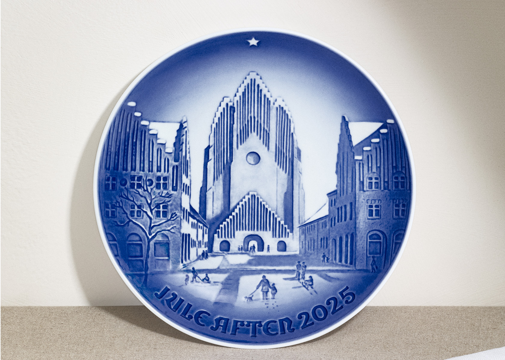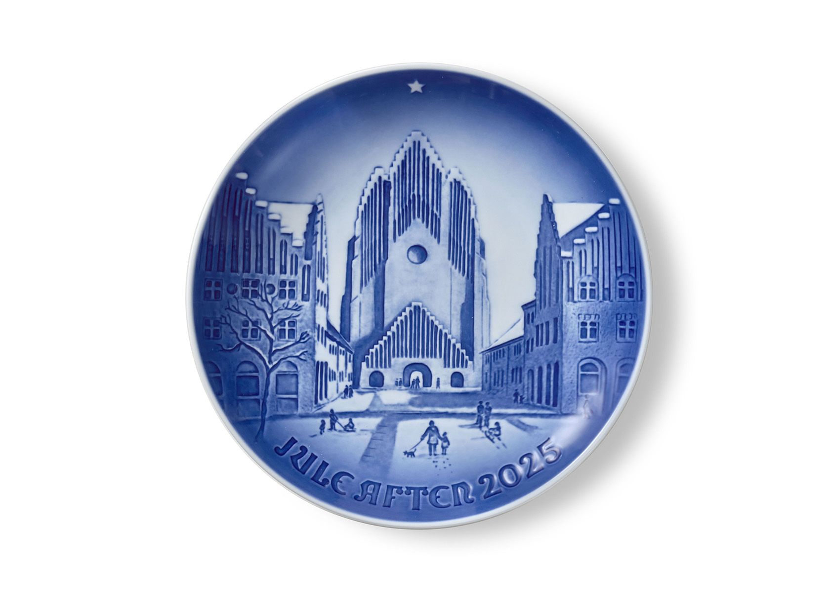 The 2025 Bing & Grøndahl Annual Plate depicts the iconic Grundtvig's Church in Bispebjerg, Copenhagen. The church was finalized in 1940 in memory of priest and poet N.F.S. Grundtvig.