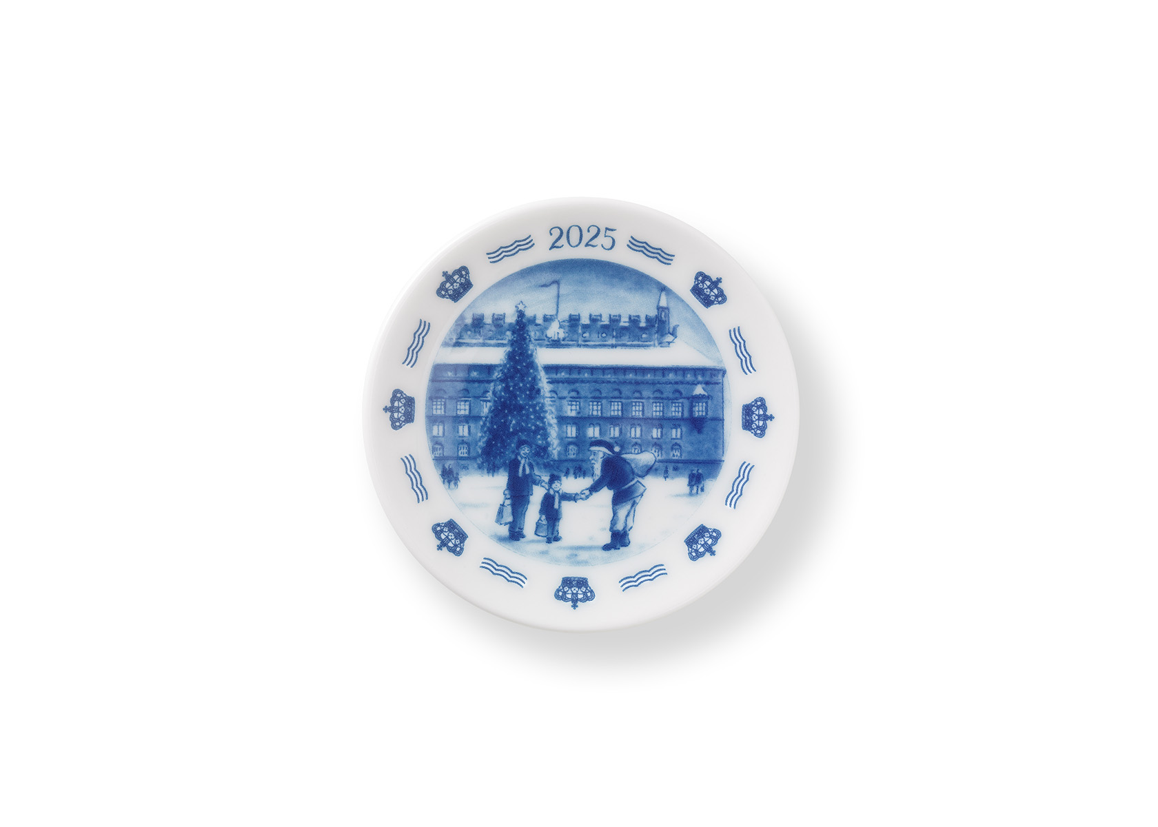 Every year on the first Sunday in Advent, candles are lit on the Christmas tree in the Town Hall Square of Copenhagen, a tradition dating back to 1914. In this year's motif on the Royal Copenhagen Plaquette, a little boy and his mother greet Santa Claus, who is crossing the Town Hall Square.