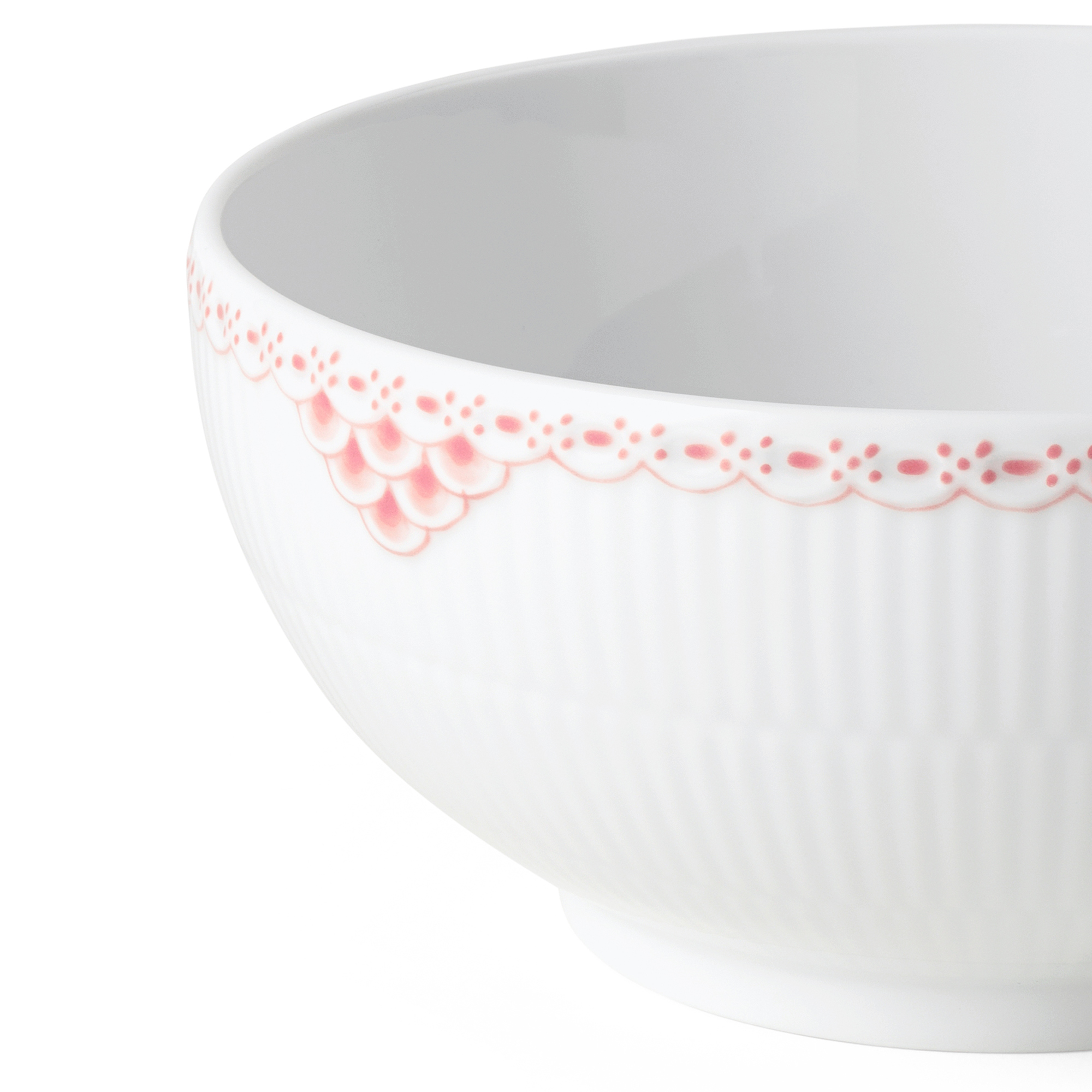 The Coral Lace collection gets its elegant half lace border from the 1978 Princess collection. The soft coral colour circles the fluted porcelain surface creating a simple and delicate look. A curated collection designed to elevate the everyday.