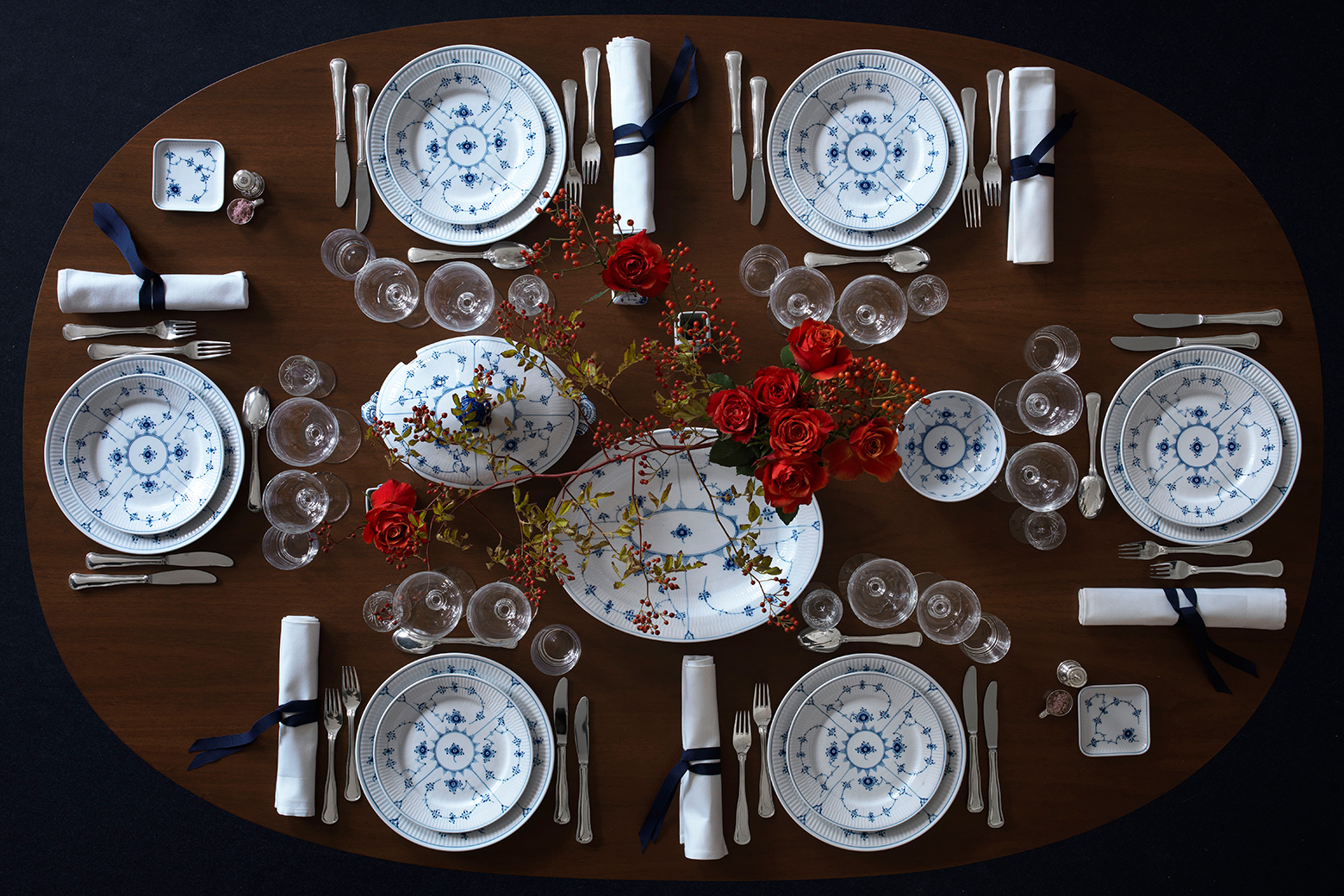 Blue Fluted Plain is also known as the "mussel" painted pattern, and though many old tales explain the meaning behind the name, no one knows for sure. Some claim the name refers to the pattern’s landscape of fluted and plain sections, which resemble the shape of a mussel. Others, like former Artistic Director, Arnold Krog, claimed the name derived from the cobalt blue colour used in the hand-painted decorations, a colour also referred to as "mussel colour".