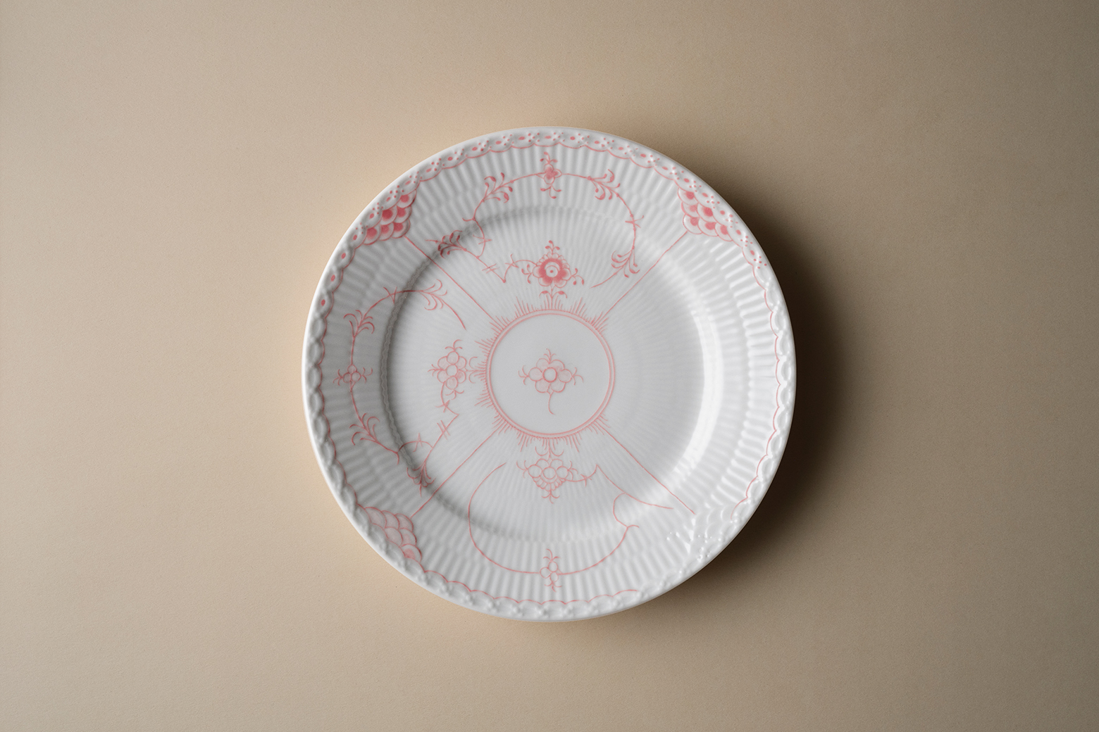 In the late 1800’s after Arnold Krog had been appointed Artistic Director, a few special productions with Pattern No. 1 in a variety of overglaze colours were made to be sold at Tiffany’s in New York. The colours were a light blue, emerald green and a bright raspberry pink - this pink colour became the inspiration for the Coral Collections.
