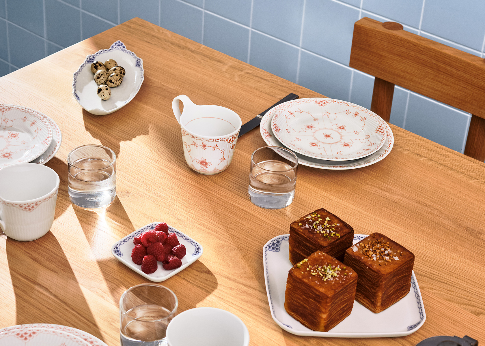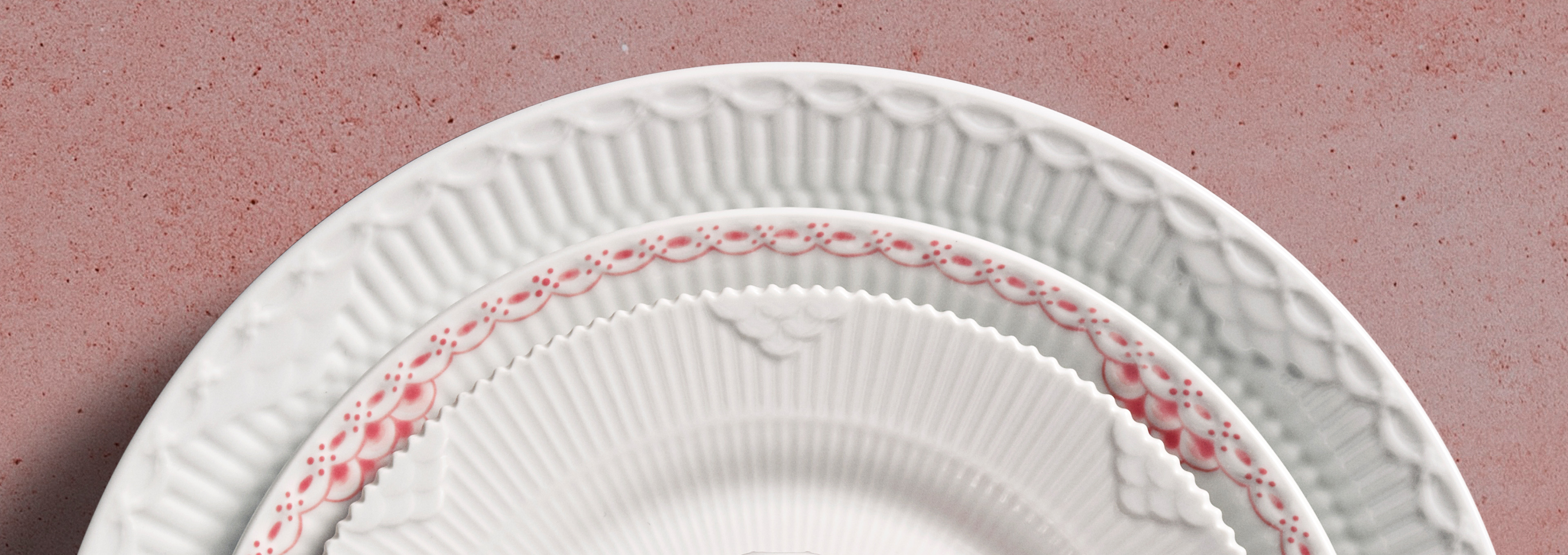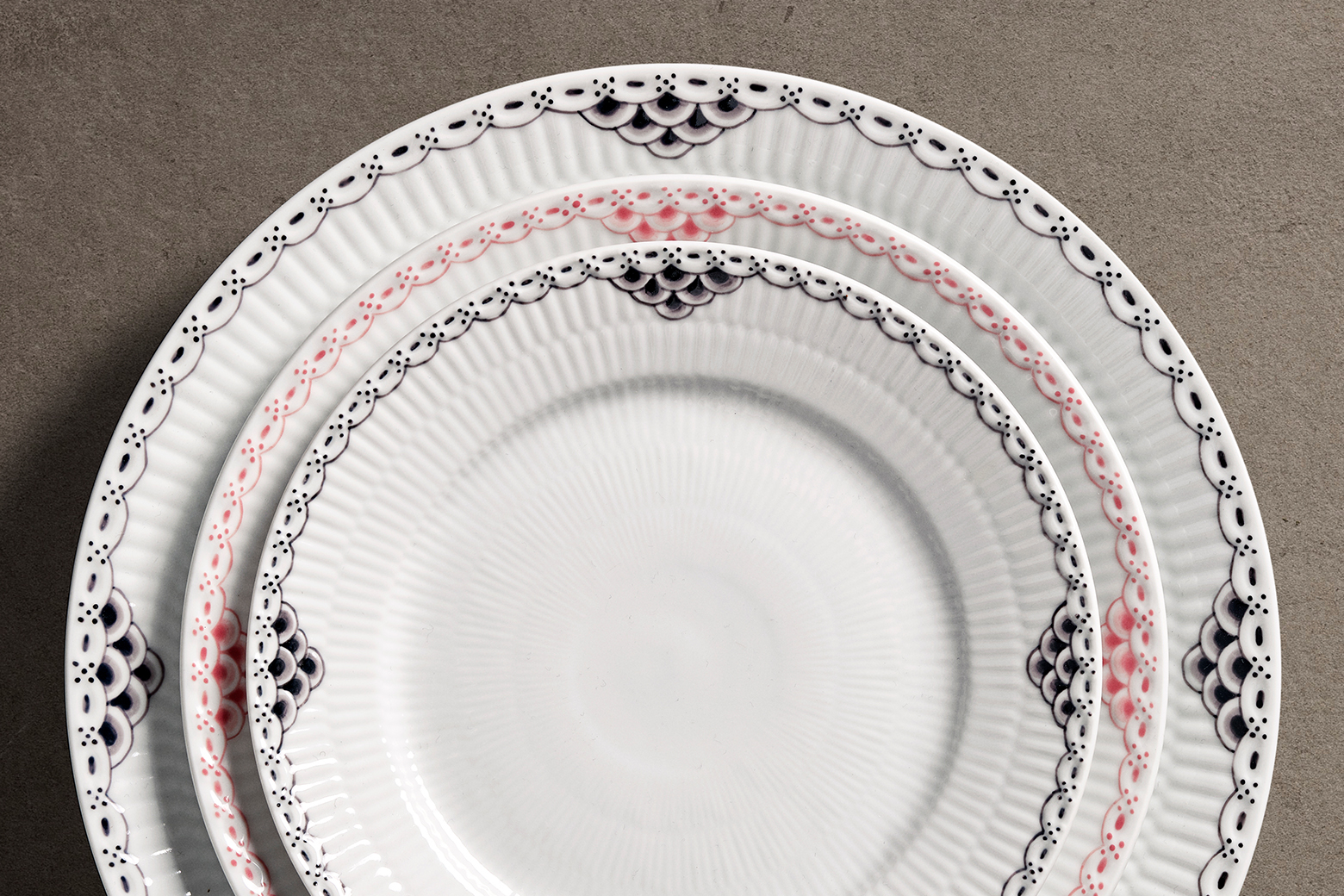 Royal Copenhagen proudly introduce a new color to the lace decoration; a soft, yet vibrant coral, inspired by our historical colour archive. A colour that feels modern, but still has a sense of timelessness.