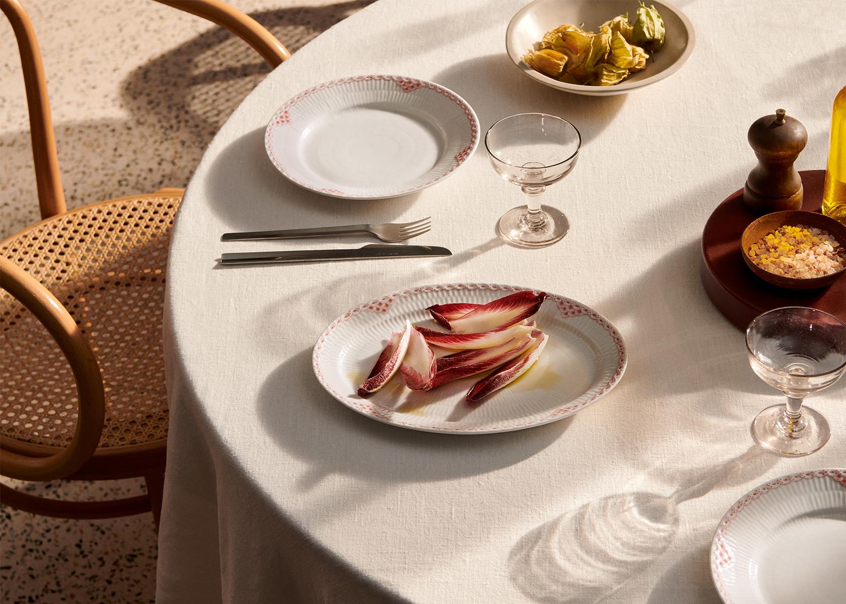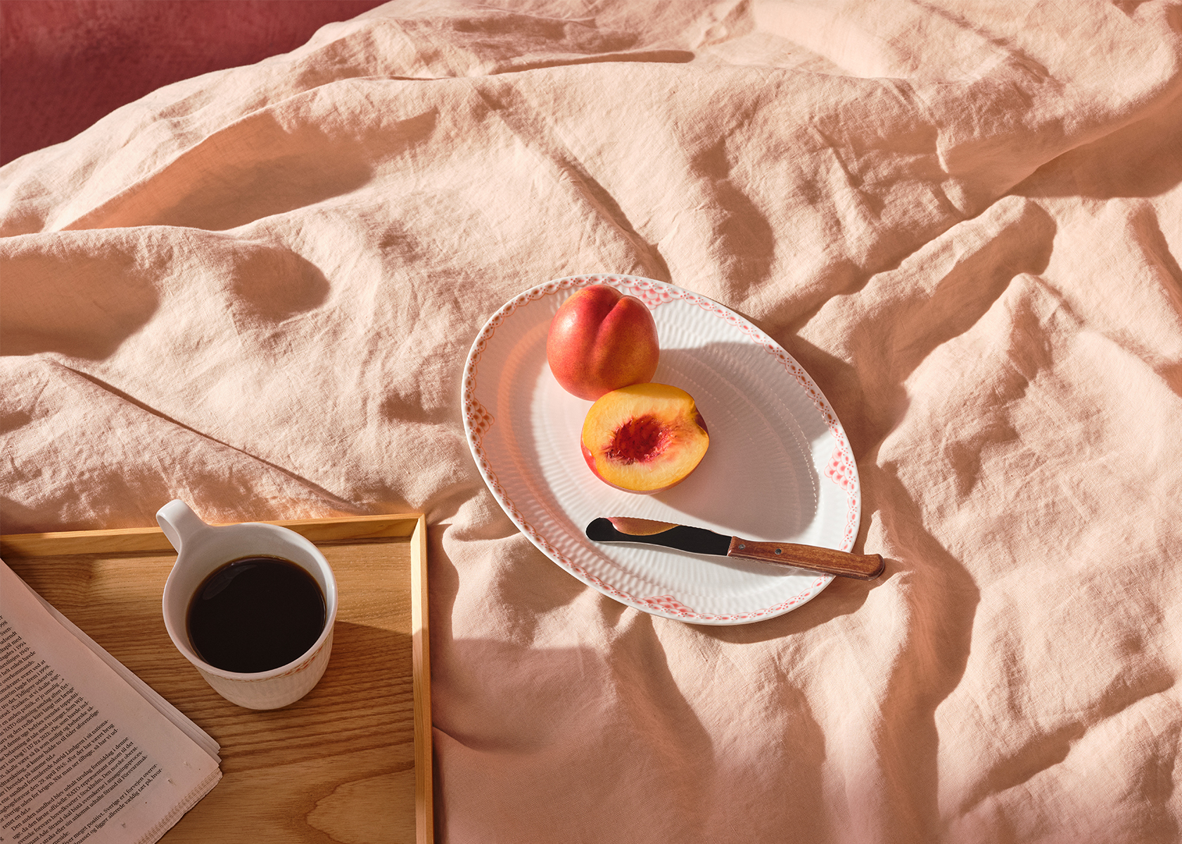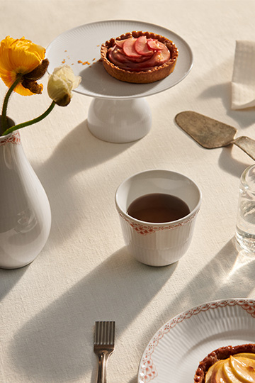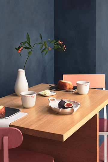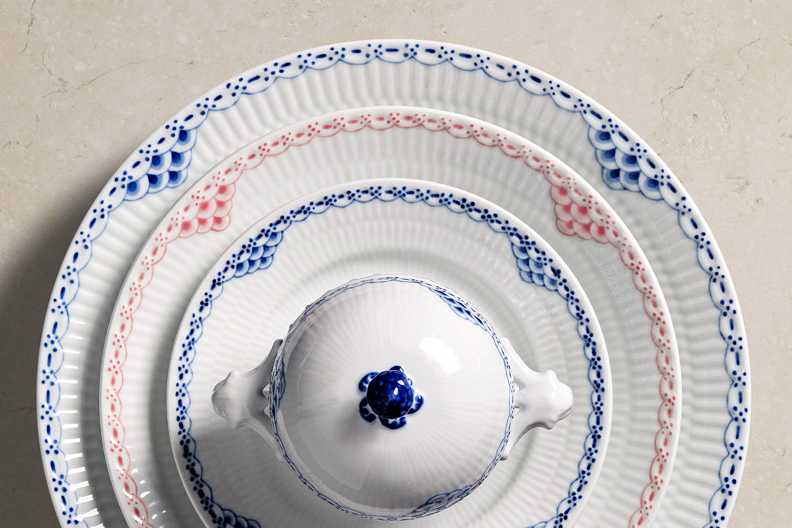 Royal Copenhagen proudly introduce a new color to the lace decoration; a soft, yet vibrant coral, inspired by our historical colour archive. A colour that feels modern, but still has a sense of timelessness.