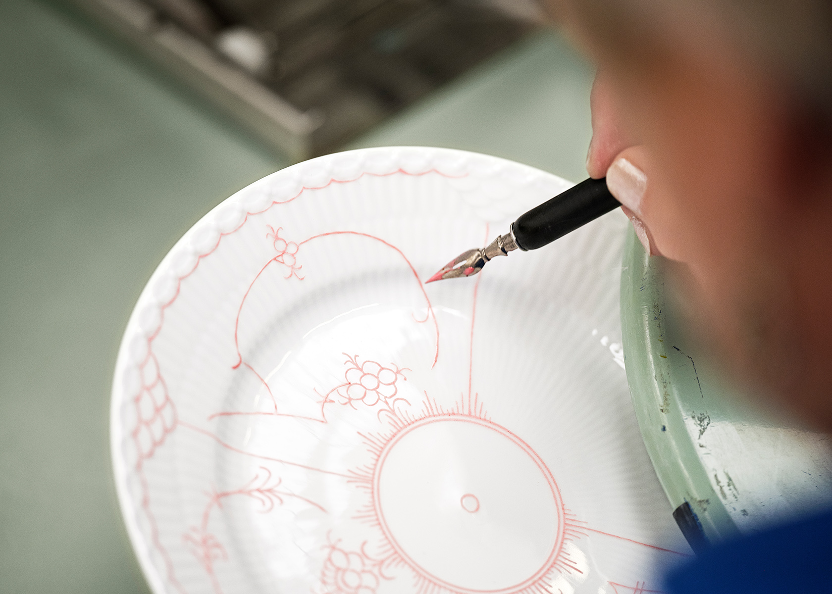 Explore in-glaze handpaintingThe majority of Royal Copenhagen's porcelain is painted in the iconic cobalt blue, where the various decorations are handpainted using the underglaze technique. This means that the painter paints on the biquit porcelain and after that the colour is locked with the glazing and firing. The Coral collections are not handpainted with the underglaze technique but with the lesser know craft; in-glaze.
